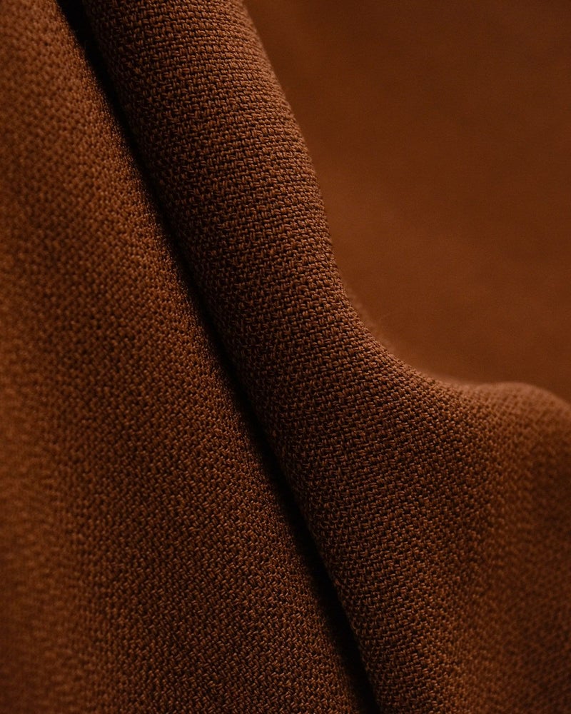 落ち感のある生地で、身体のラインを拾いすぎず美しいシルエットを保ってくれます。軽やかでややとろみ感のある質感は、長時間の着用でもストレスなく快適に過ごせます。透け感はなく、一枚で安心して着用できる素材です。
