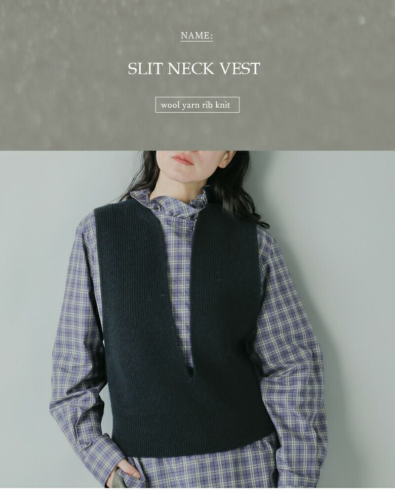 ウールヤーン畔編スリットネックベスト8818-199-0025