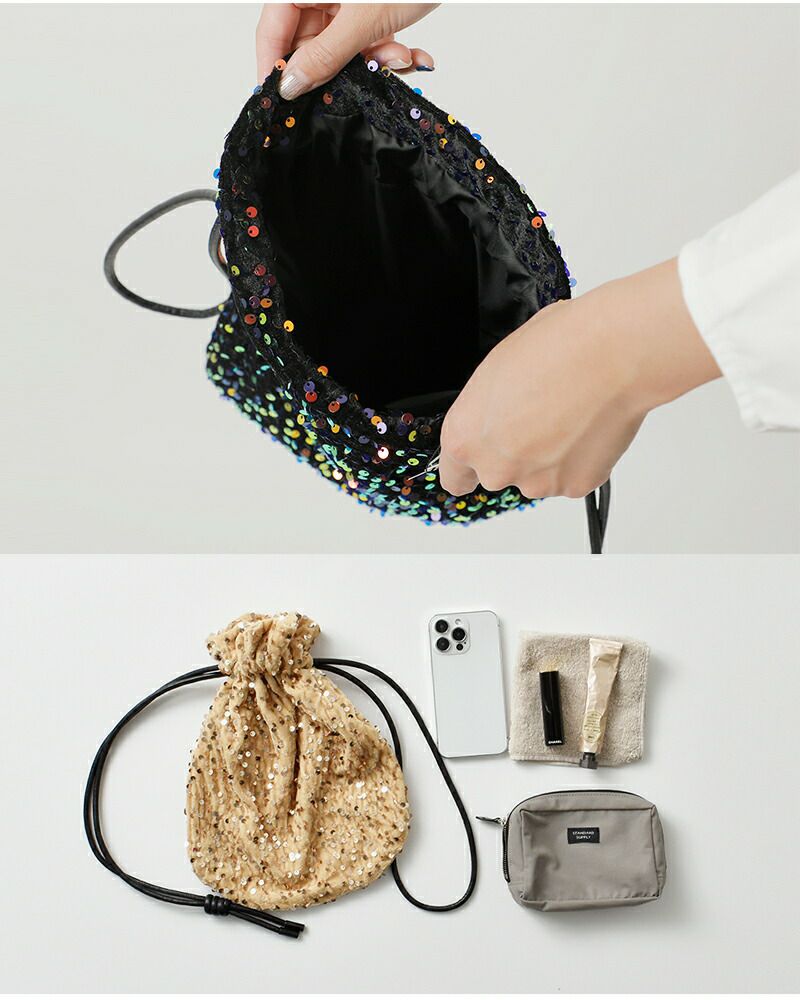 全面にちらばめられたスパンコールの光沢が華やかなBAG。