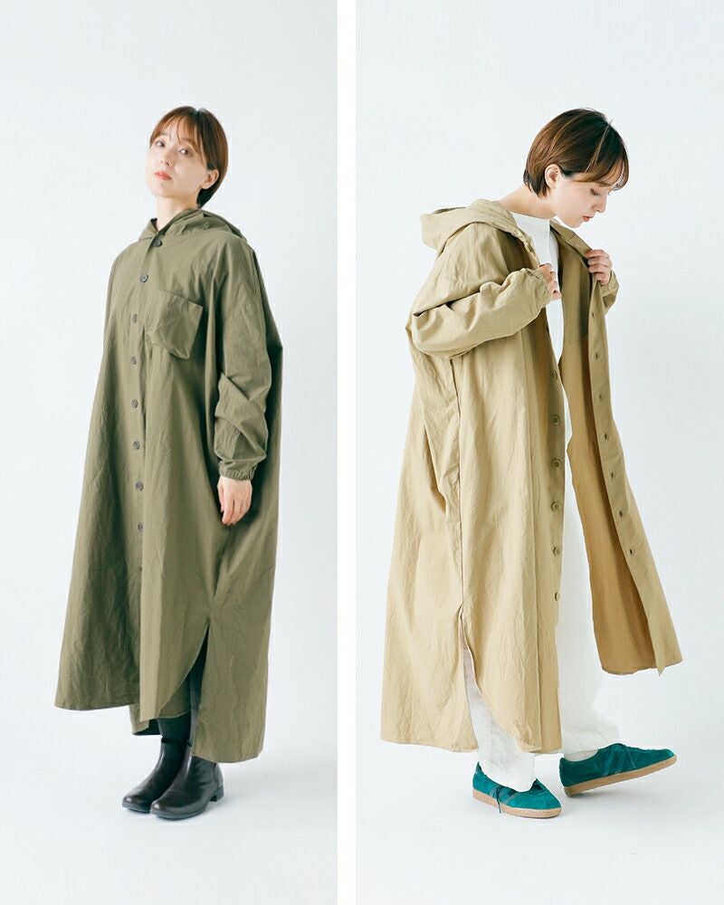 大人のナチュラルスタイルを引き立てる、コットンフードコートワンピース。