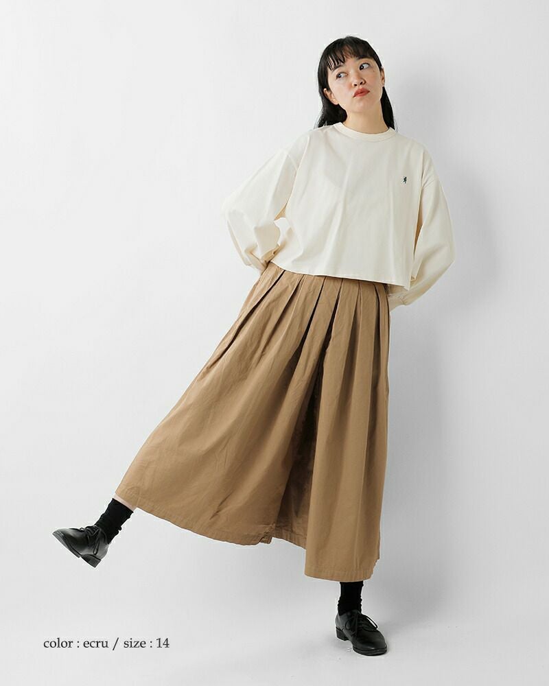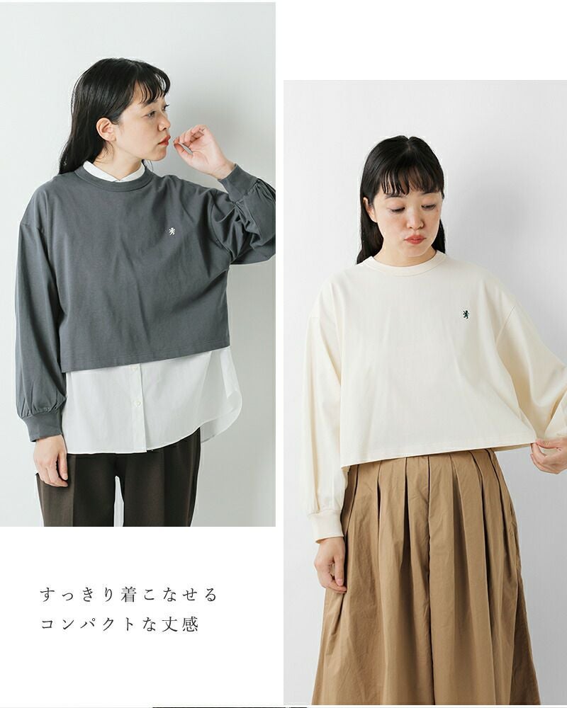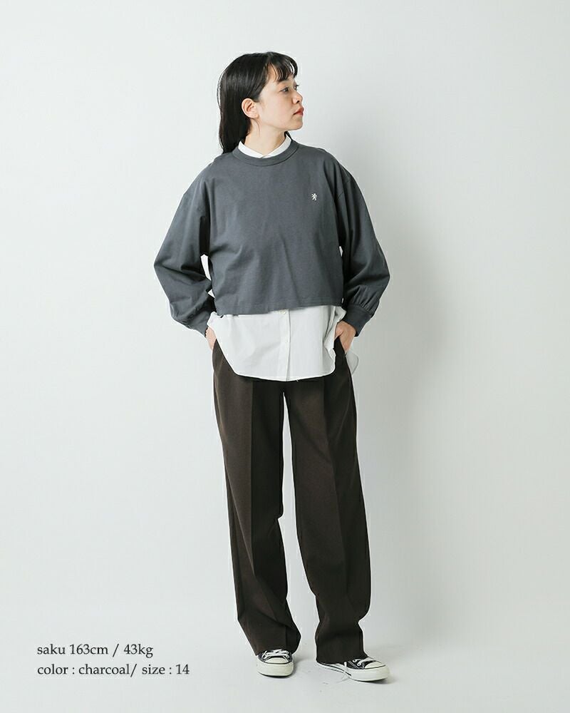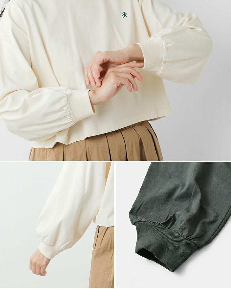 Gymphlex(ジムフレックス)より、コットン天竺パフスリーブクルーネックプルオーバーをご紹介します。 袖にボリュームを持たせたクルーネックのプルオーバーです。ギャザーをたっぷり寄せることでシンプルでありながらもデザイン性を持たせています。短めの丈感を活かしてレイヤードなどもおすすめです。