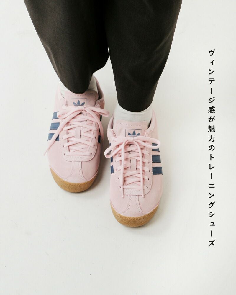 レザーのアッパーにはアイコニックな3ストライプがアクセントとして施されています。