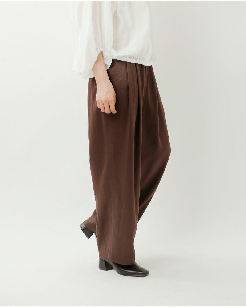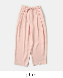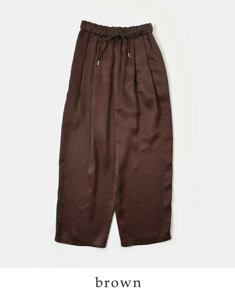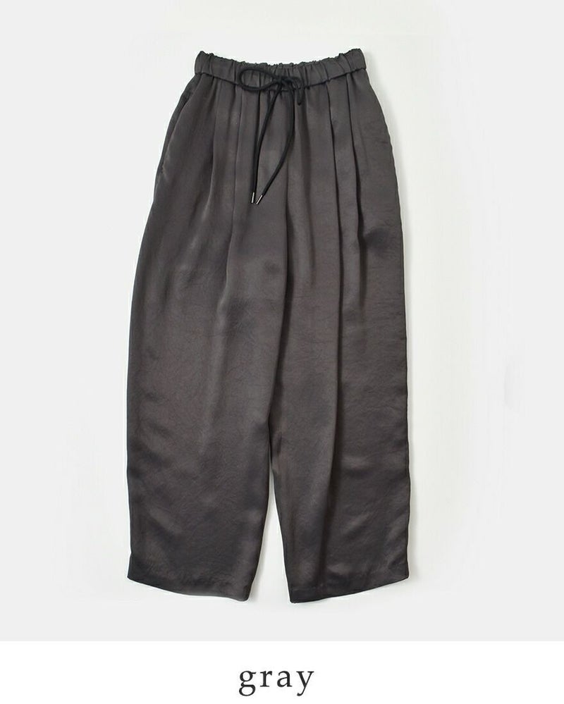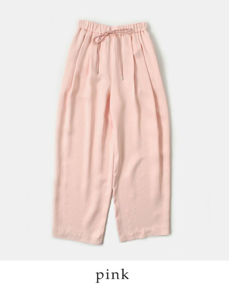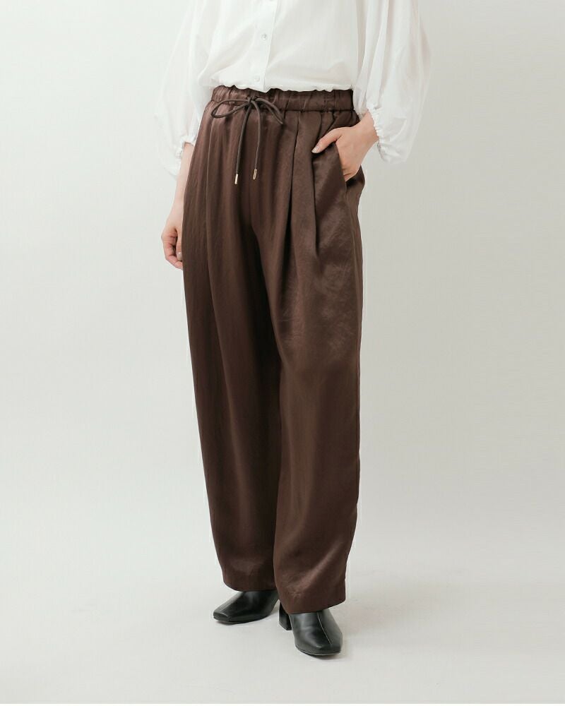 レザーライクサテンビンテージドロストタックパンツj-4642
