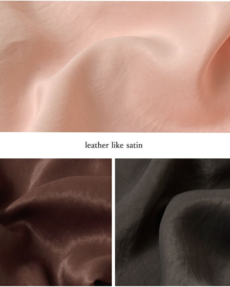 絹のような光沢感と、なめらかな手触りが特徴のアセテート生地。肌触りがやわらかく、ドレープ性に優れています。サラリとした質感で、肌離れもよくオールシーズン活躍。高級感がありつつもシワになりにくいので、デイリーに気軽に着ていただけます。
