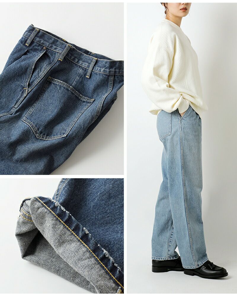 Johnbull(ジョンブル)より、デニム タック マム パンツ をご紹介します。ヴィンテージのUSNデニムトラウザーからアレンジしたタック入りのデニムパンツ。ヒップ周りはゆとりがありながら、すっきりと着こなせます。ベーシックなテーパード気味のシルエットで長くお楽しみ頂けます。