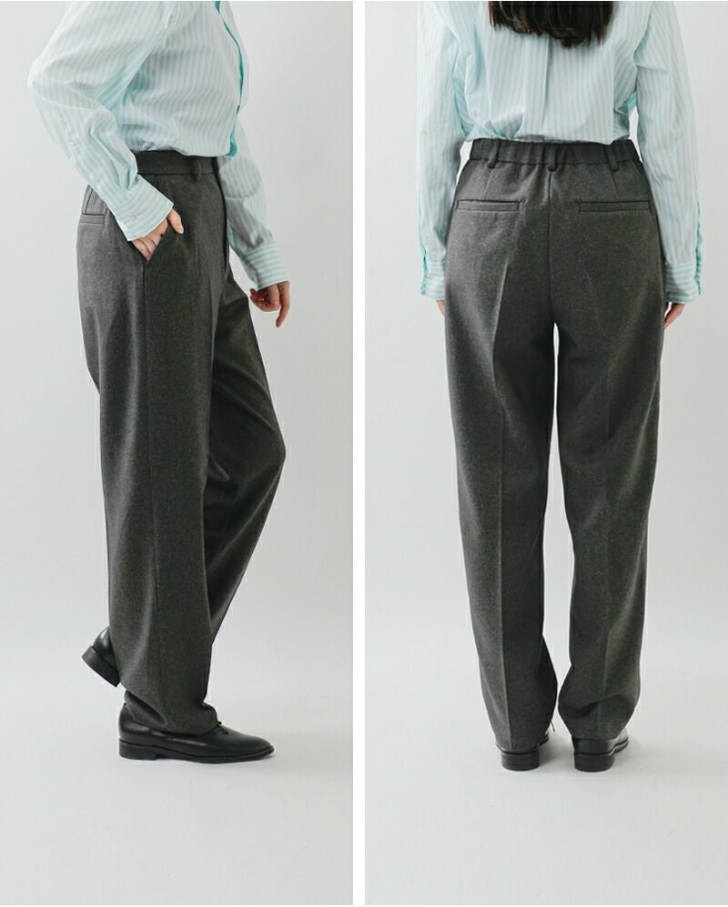 ウールライクピンタックワイドイージーテーパードスラックスパンツjl253p11