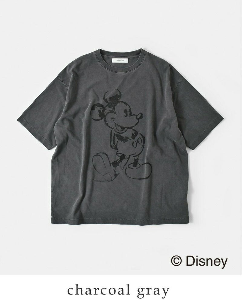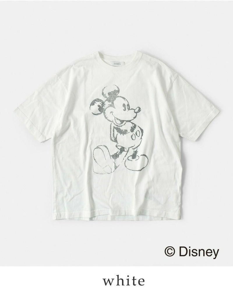 Johnbull(ジョンブル)より、コットン<ミッキーマウス>プリントTシャツ“<MICKEY MOUSE> T”のご紹介です。愛らしいミッキーのイラストをかすれた風合いのプリントで表現したこなれ感のあるTシャツ。ドロップショルダーとゆったりしたサイジングでリラクシーにゆるっと着こなせます。製品染めで独特のムラ感がおしゃれな雰囲気に♪