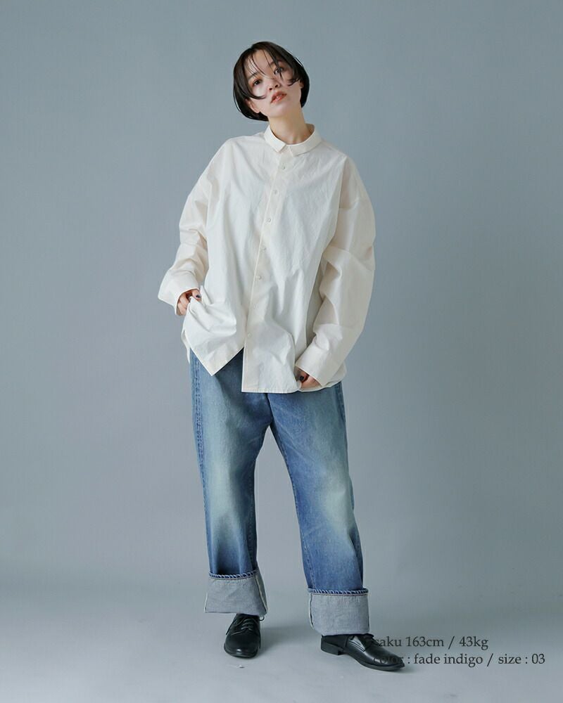往年女優のデニムスタイルを思わせる、股上を深く取ったワイドストレートタイプのジーンズです。ゆったりしつつも野暮ったさを排除し、女性らしいバランスに仕上げられた1本。淡くフェードしたウォッシュ加工をほどこしたヴィンテージライクなブランド定番ジーンズです。