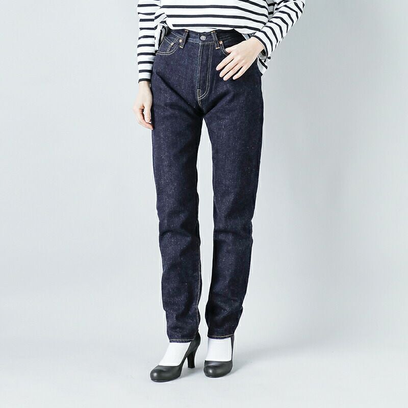 少しオンスの厚めの生地を使用したストレッチの入っていない生地のため、始めはやや固く窮屈に感じるかもしれません。しかし着用と洗濯を重ねる事で穿く人の身体にフィットしていきます。しっかりとした生地はへたりにくく、同時に綺麗なシルエットを保ってくれます。