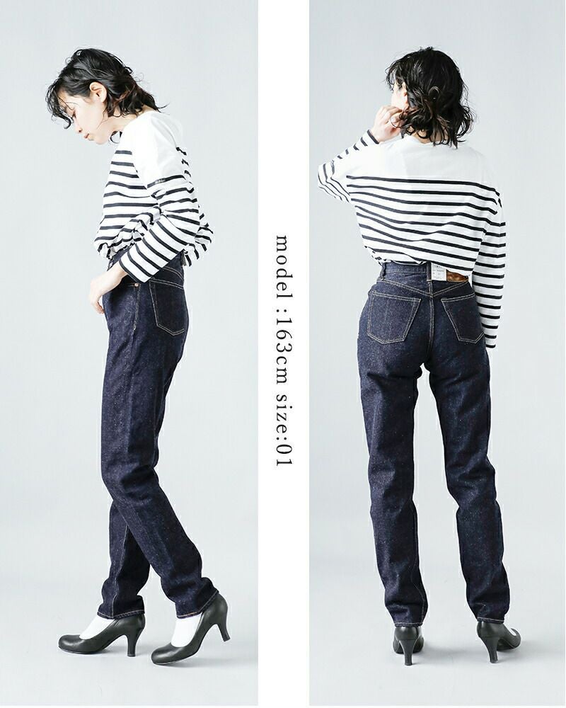 ローライズではなく、程良く股上を確保することでタックインもしやすくウエストからワタリ、ヒップラインにかけて女性らしい綺麗なシルエットが生まれます。