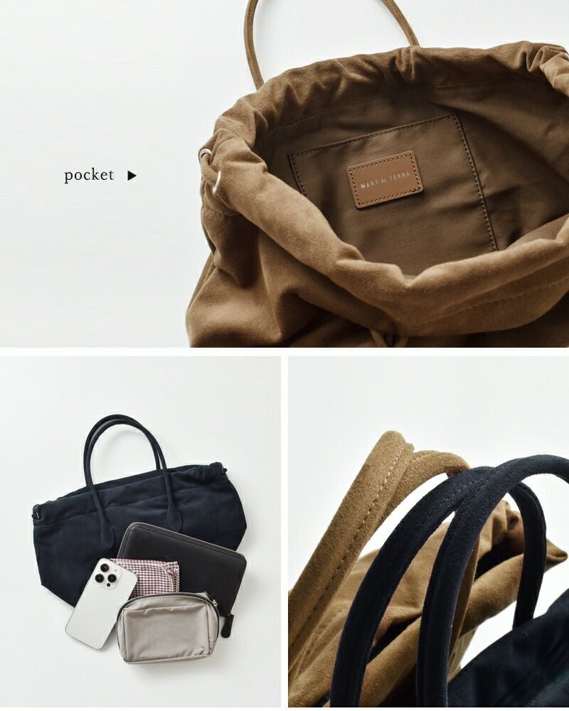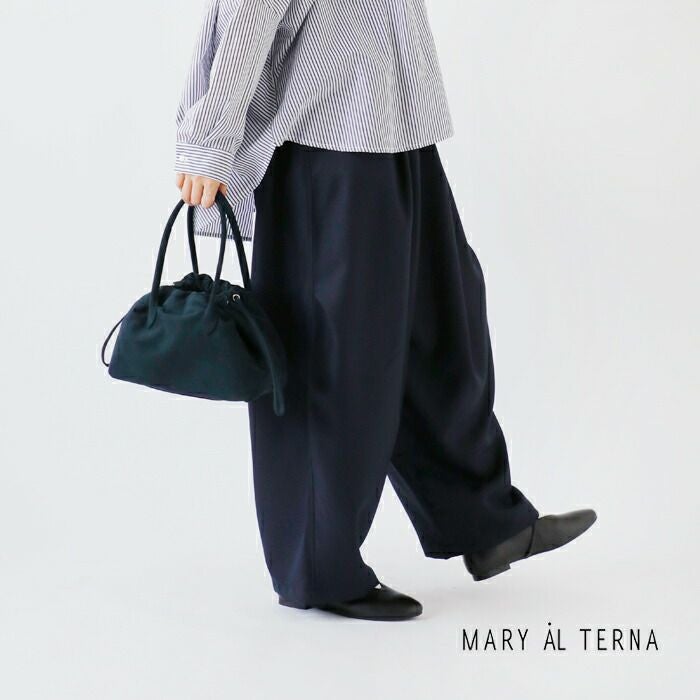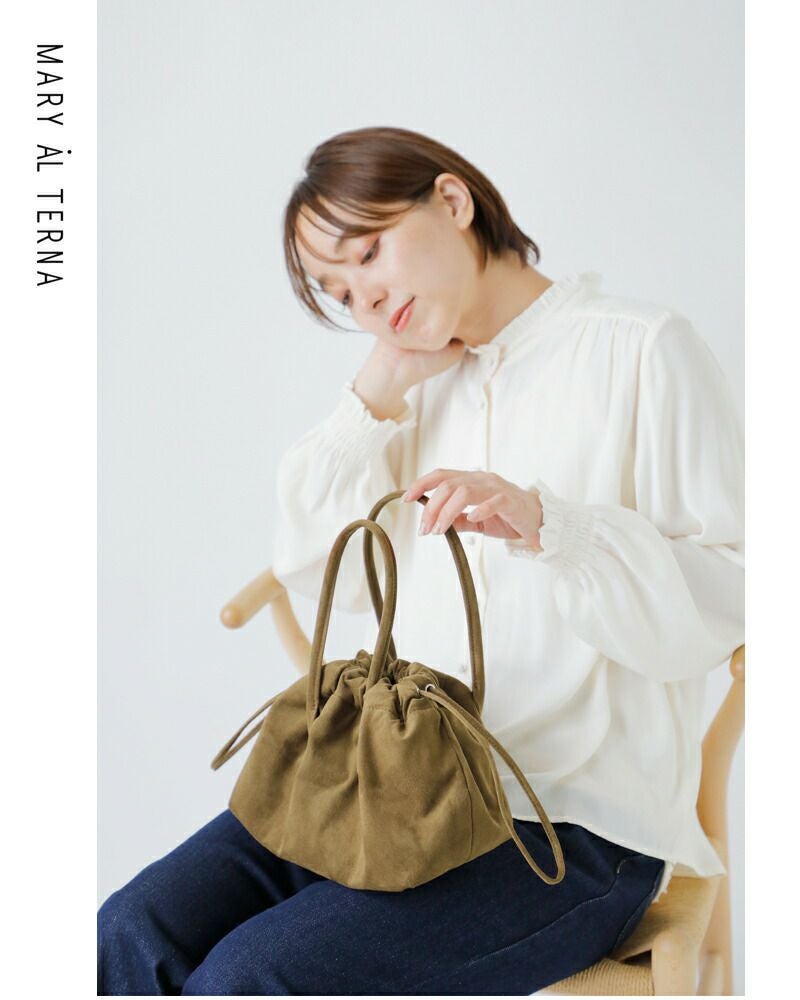 MARY AL TERNA(メアリオルターナ)より、ウルトラスエード 巾着 ミニ ハンドバッグ “WRING”をご紹介します。新型“WRING”のミニハンドバッグ。巾着を締めた時のドレープの表情を最大限に生かした変形デザインが魅力的なハンドバッグ。抜群の軽さと、水分に強く色落ちしづらい特徴を持つ、シーズンレスな万能素材のウルトラスエードを使用。巾着で開閉する仕様で、内側にはポケットが1つあり小物も収納しやすいです。