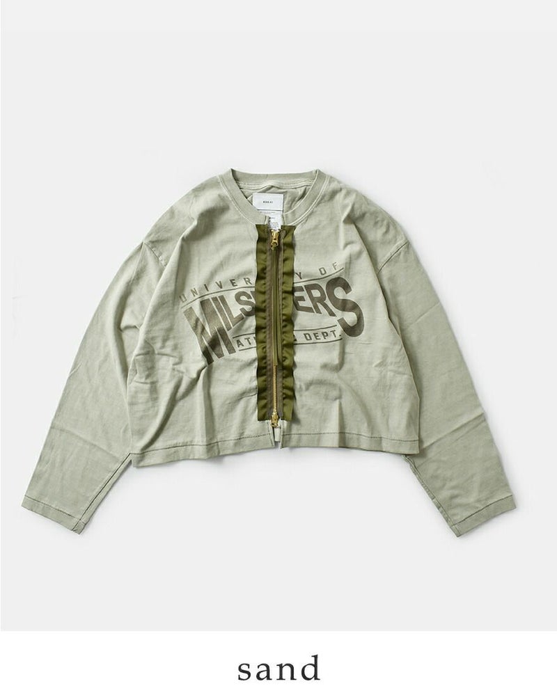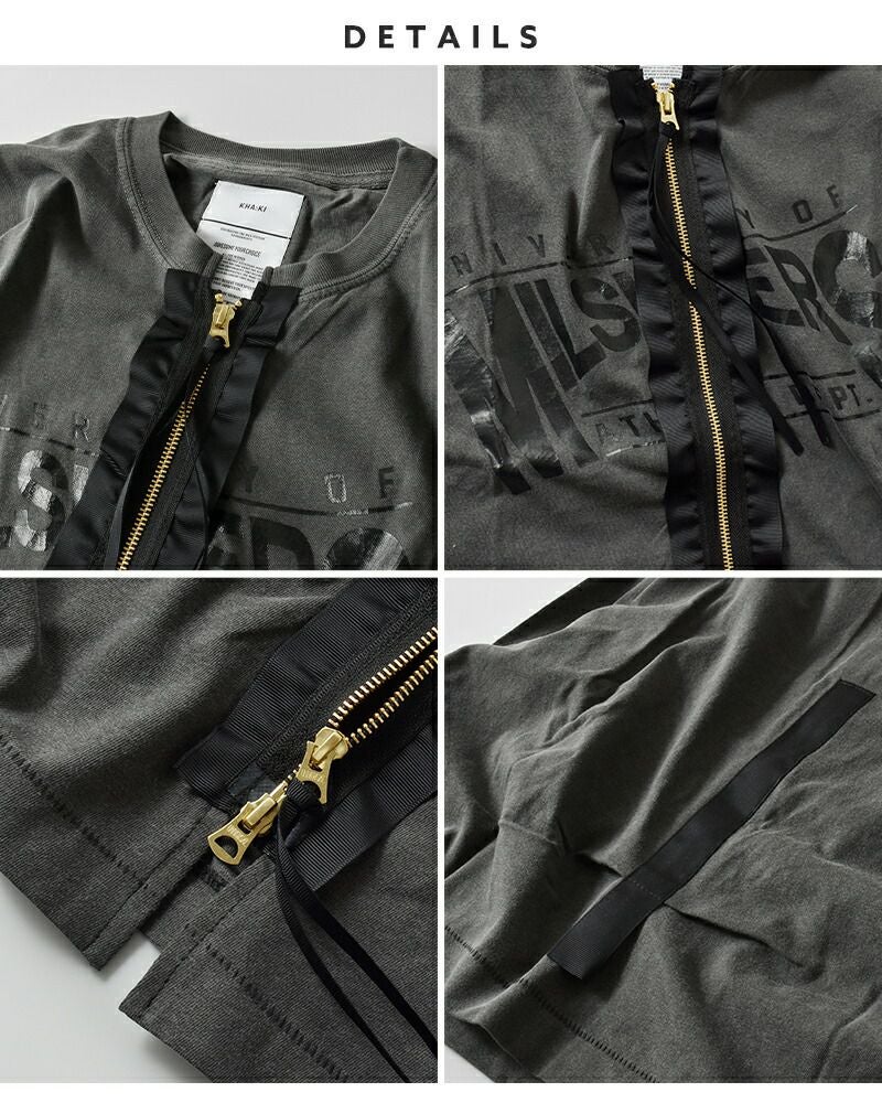 kha:ki(カーキ)よりコットン リメイク Tシャツ カーディガン “REMAKE TEE CARDIGAN”のご紹介です。ヴィンテージ感のあるプリントボディとファスナー使いが特徴的なリメイクカーディガン。オーバーサイズのプリントTをベースにリメイクを施しました。裾や袖口は配色の裾引き始末で雰囲気のある仕上がりに。天竺素材なので、初秋シーズンの羽織として取り入れやすい素材感のアイテム。
