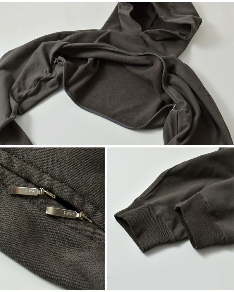 ■11oz Cotton French Terry (100% Cotton) オーガニックコットンの11oz裏毛を使用したフーデッドスヌード。製品染めを施すことにより、着込まれたスウェットのような色味と風合いを表現しています。