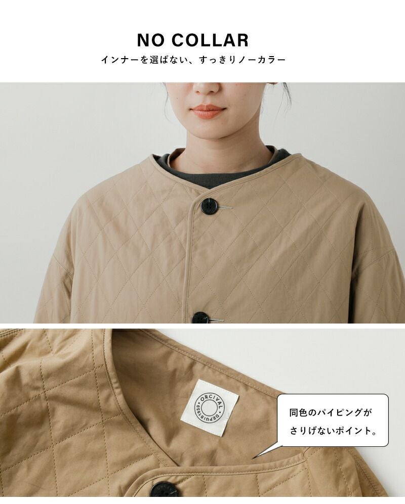 コットン インサレーション キルト ノーカラー コート or-a0573mty-25aw