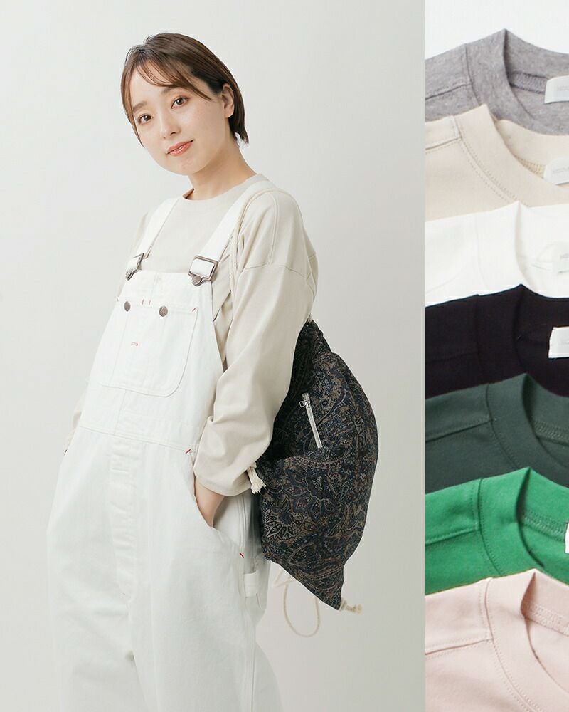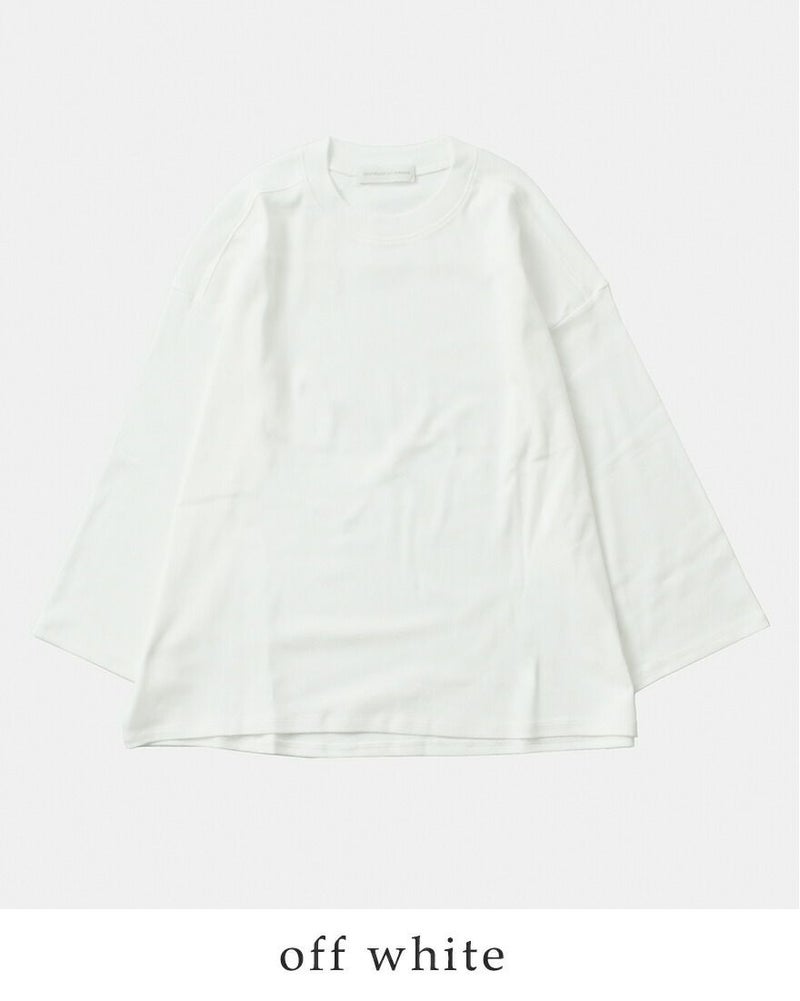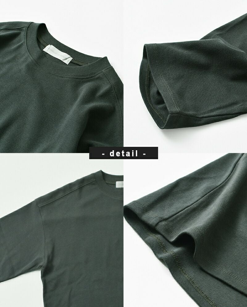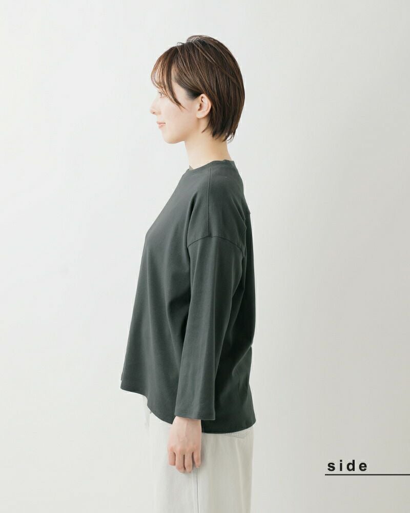 きゅっと目の詰まった上品な生地。ほどよい肉感とストレッチ、なめらかなタッチ感で心地よく着ていただけます。吸水性も高いので汗ばむ季節も爽やかです。cotton 100%