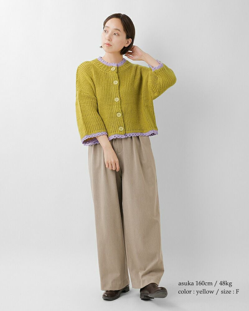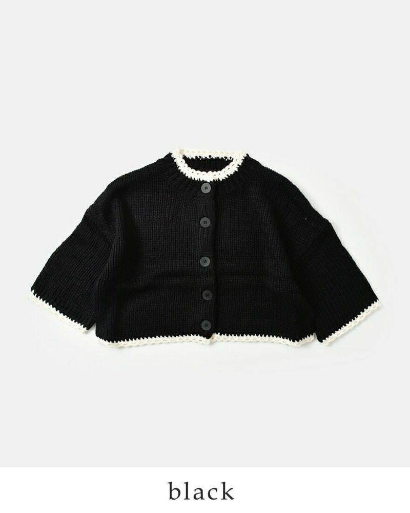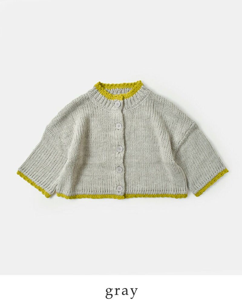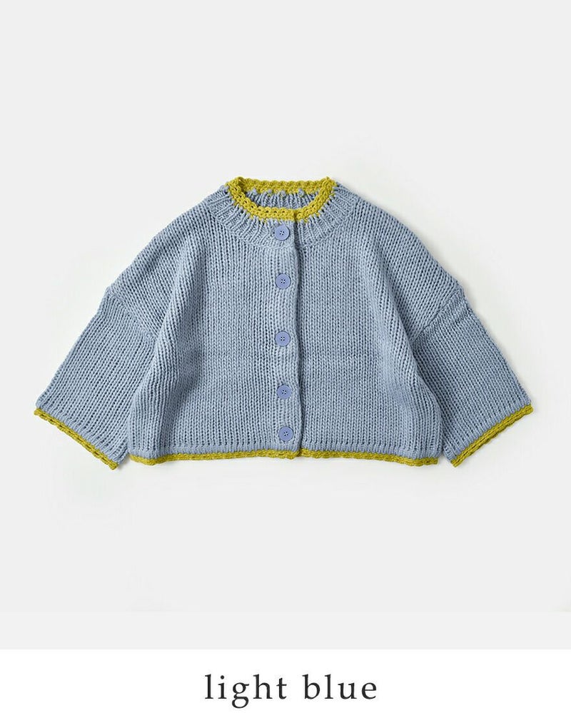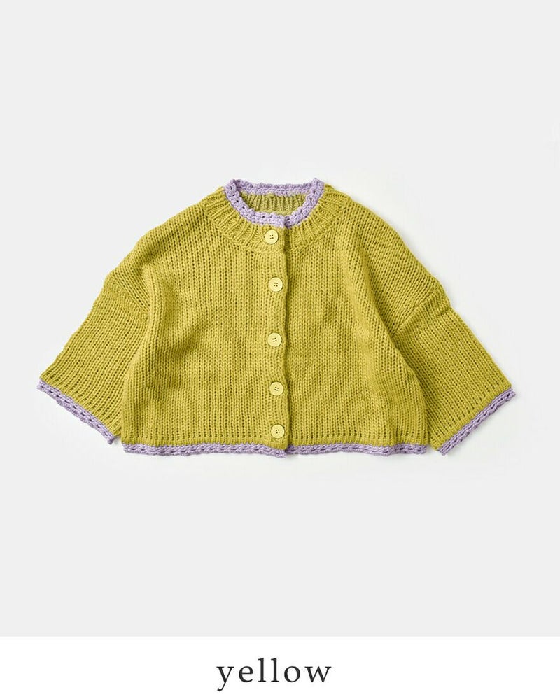 ROBE de PEAU(ローブデポー)より、アルパカ ウール ボトルネック カーディガン “JOU JOU BOTTLENECK CARDIGAN”のご紹介です。襟・袖・裾のハンドメイドのスカラップが暖かみのあるデザインのカーディガン。おしゃれな配色がアクセントになり、明るいカラーが顔映りも心も華やかにしてくれます。大きめのボタンが可愛らしさを添え、見た目以上に軽い着心地も魅力の一枚です。