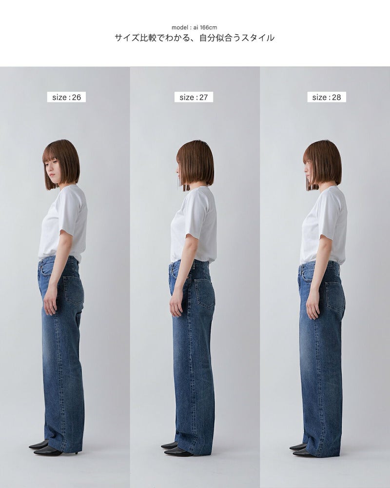 TANAKAの THE JEAN TROUSERS は、シルエットの美しさが際立つデザインですが、サイズによってフィット感が少し異なります。そこで、今回は 26 / 27 / 28 の3サイズを比較 してみました。