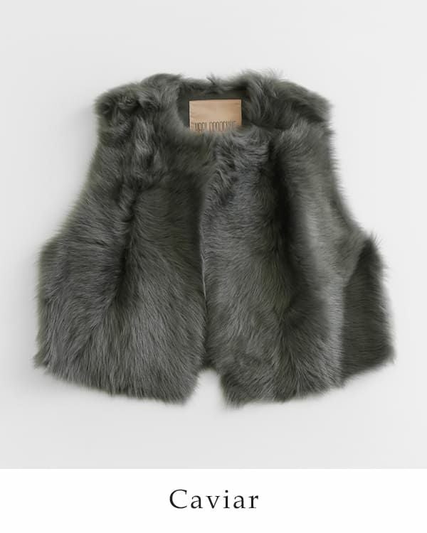 キャビアは濃い目のグレーカラー。毛並みが作る濃淡で素材の良さが引き立ち、カジュアルスタイルにもよく映えます。
