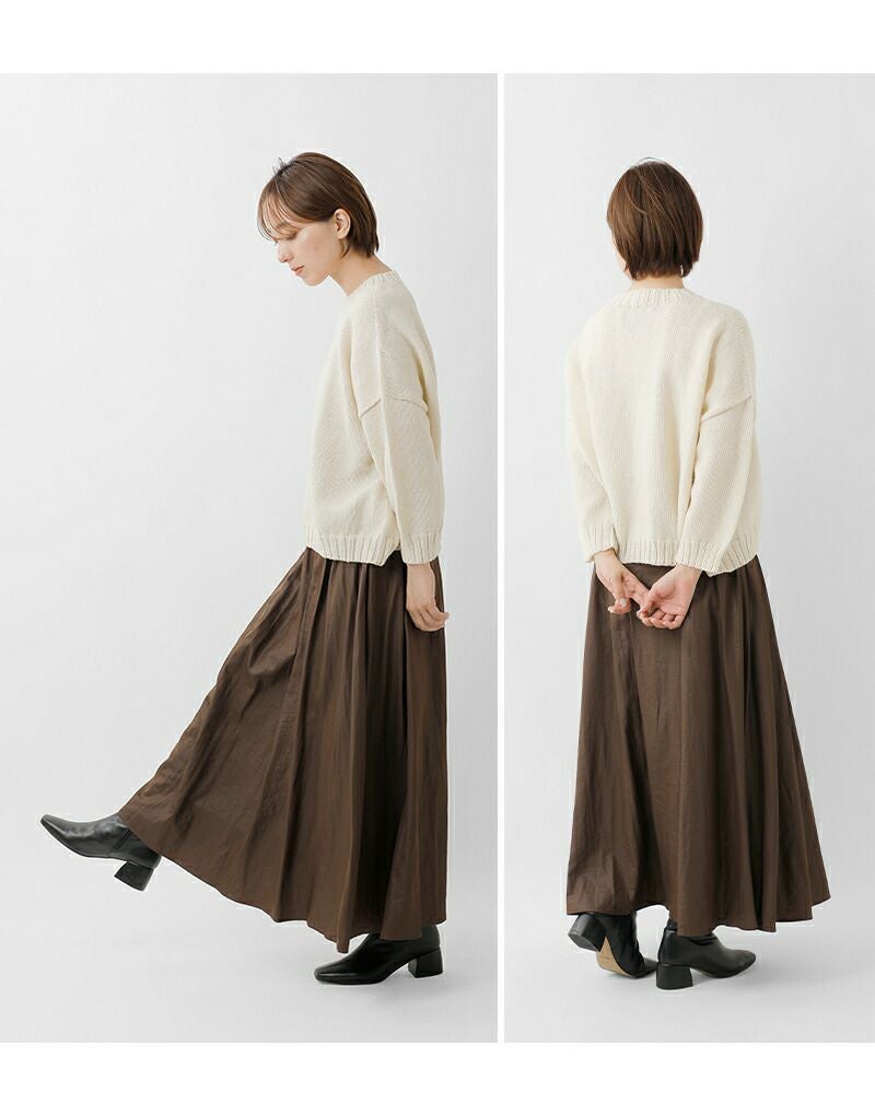 広がりすぎない上品なフレアシルエットが魅力。歩くたびに揺れる柔らかな動きが、女性らしさを引き立てます。