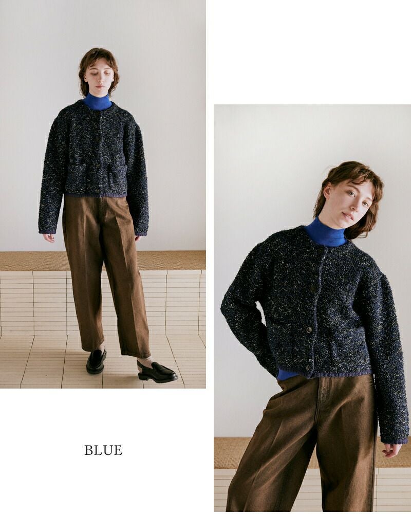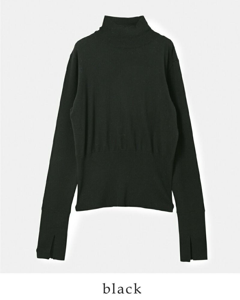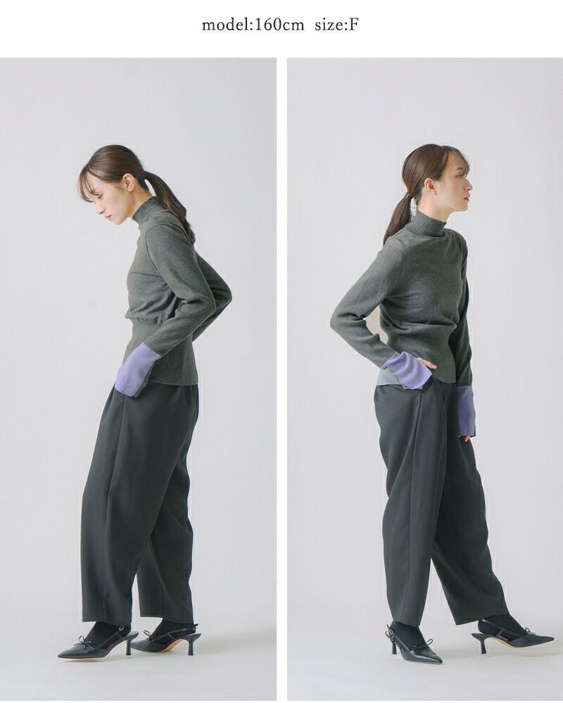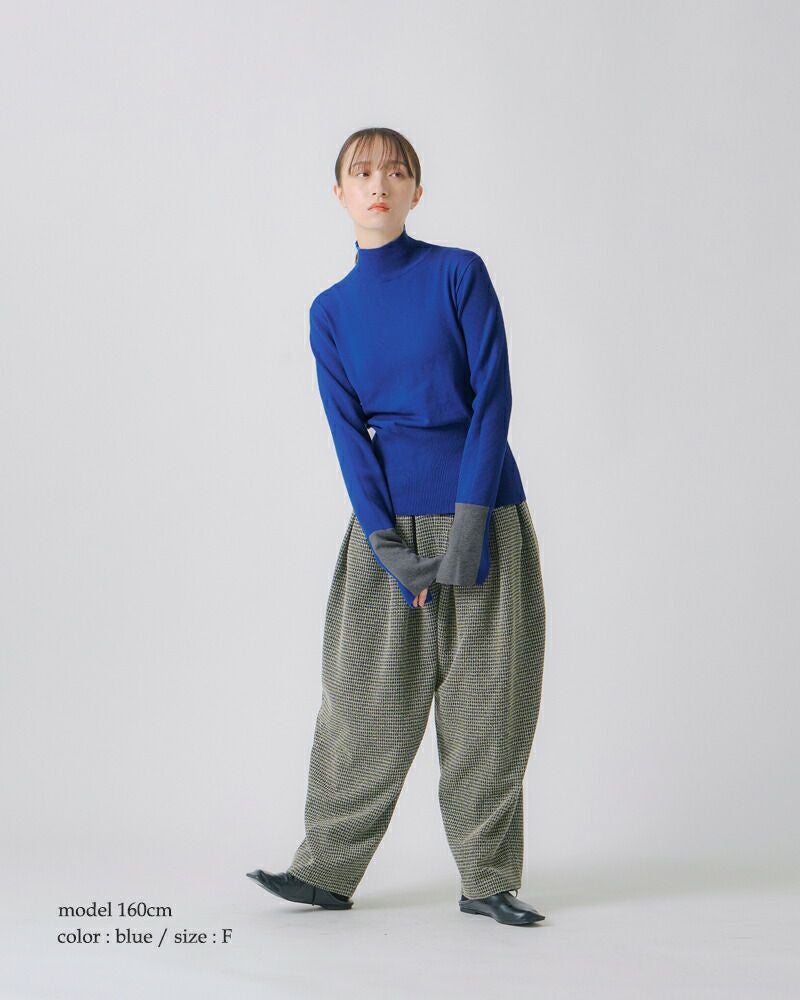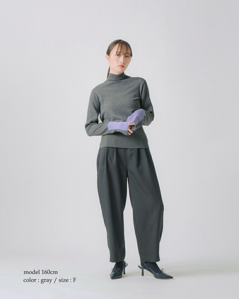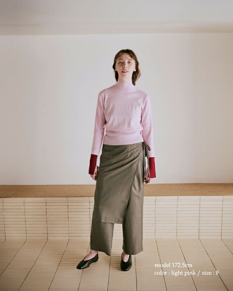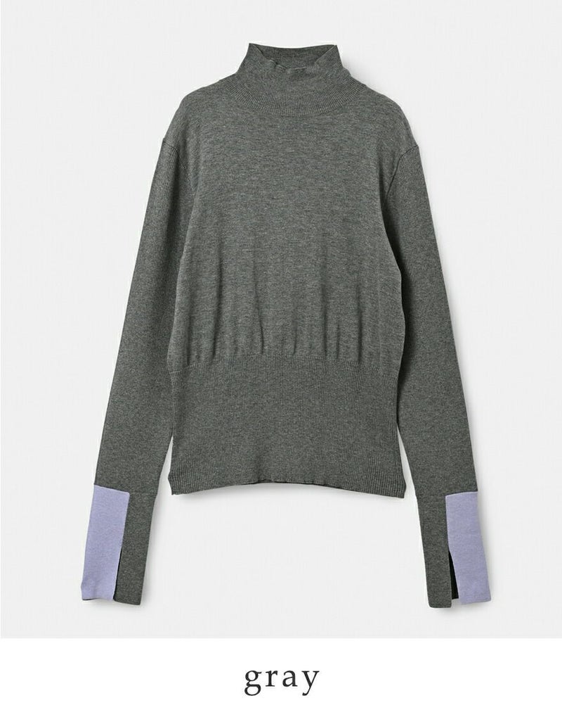 袖口を2トーンでカラーブロックにした大人の個性が光るデザイン。薄手でレイヤードしやすいニットなので、シーズンを選ばずにスタイリングしていただけます。