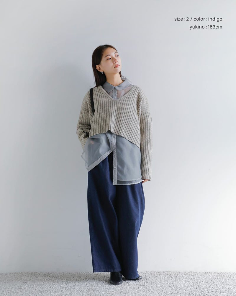 贅沢な生地分量によるワイドなシルエットが特徴。腰から裾にかけて自然な落ち感が生まれ、リラックスした履き心地ながらもすっきりとした印象に。デイリーはもちろん、カフェやお出かけシーンにも活躍する万能デニムです。