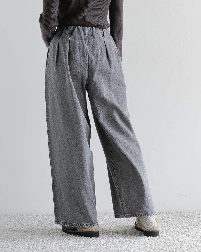 定番のワイドパンツをアップデートした進化型タックデニムワイドパンツ。贅沢な生地分量で仕立てたフルレングスのワイドシルエットが特徴です。