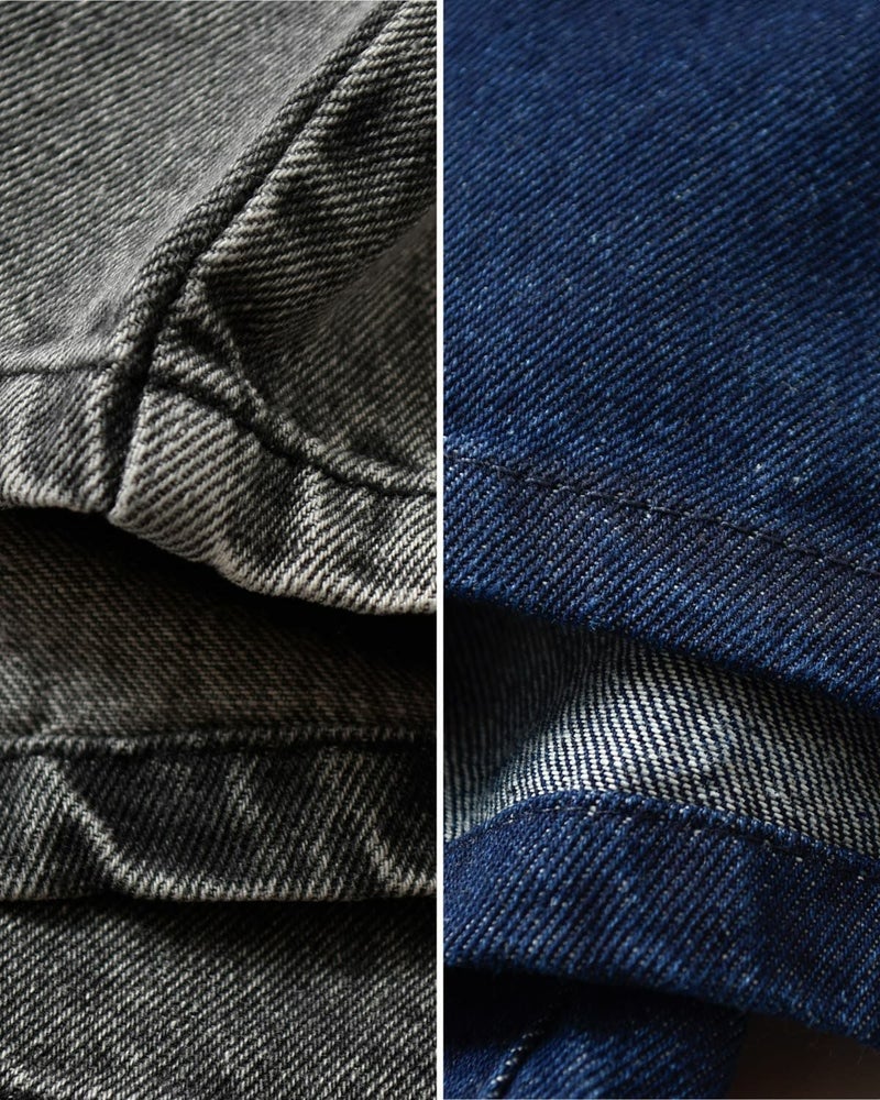 生地には10.7ozのコットンデニムを使用していてカラーごとに加工の仕方を変えています。シーズンレスで柔らかく履き心地の良い素材です。