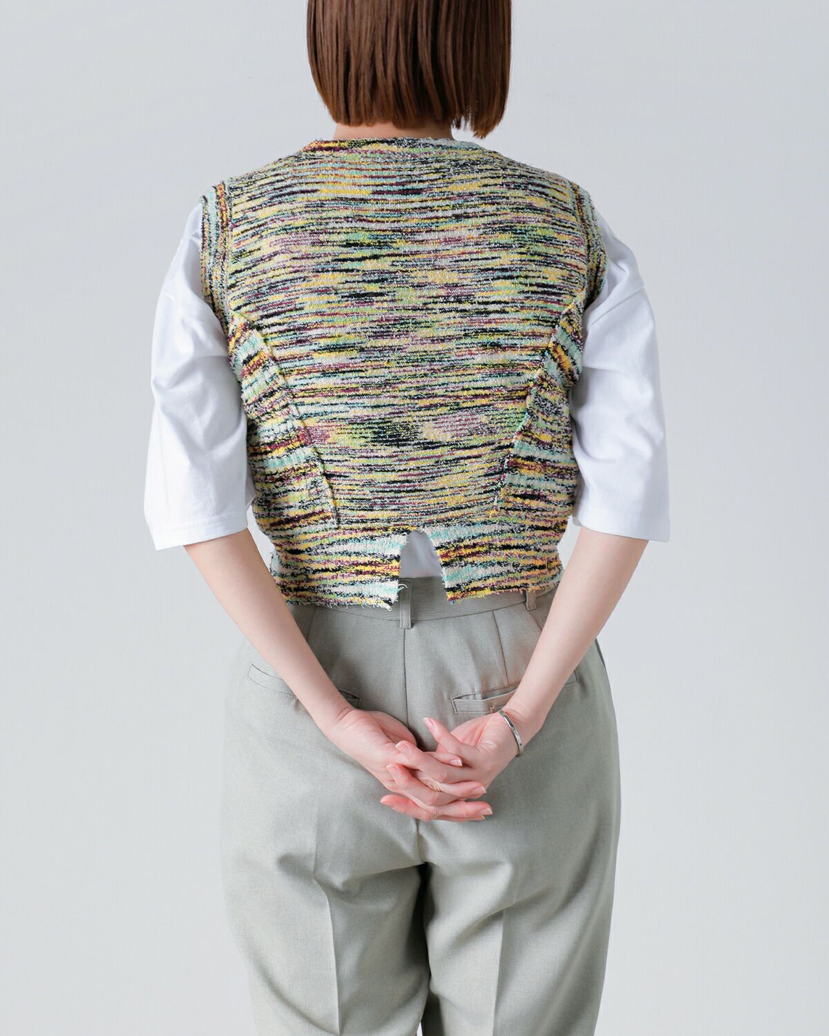 他の画像を見る 大人かわいいカラーミックスニットベストバックスリットおしゃれコーデ主役素材感美しいシルエットJUNMIKAMI 【60%OFF】JUN MIKAMI ジュンミカミ コンフェッティヤーン ベスト jm-25ss-16-n-kk レディース ¥ 39,600 ¥ 15,840 税込 SALE カートに入れる お気に入りに登録する