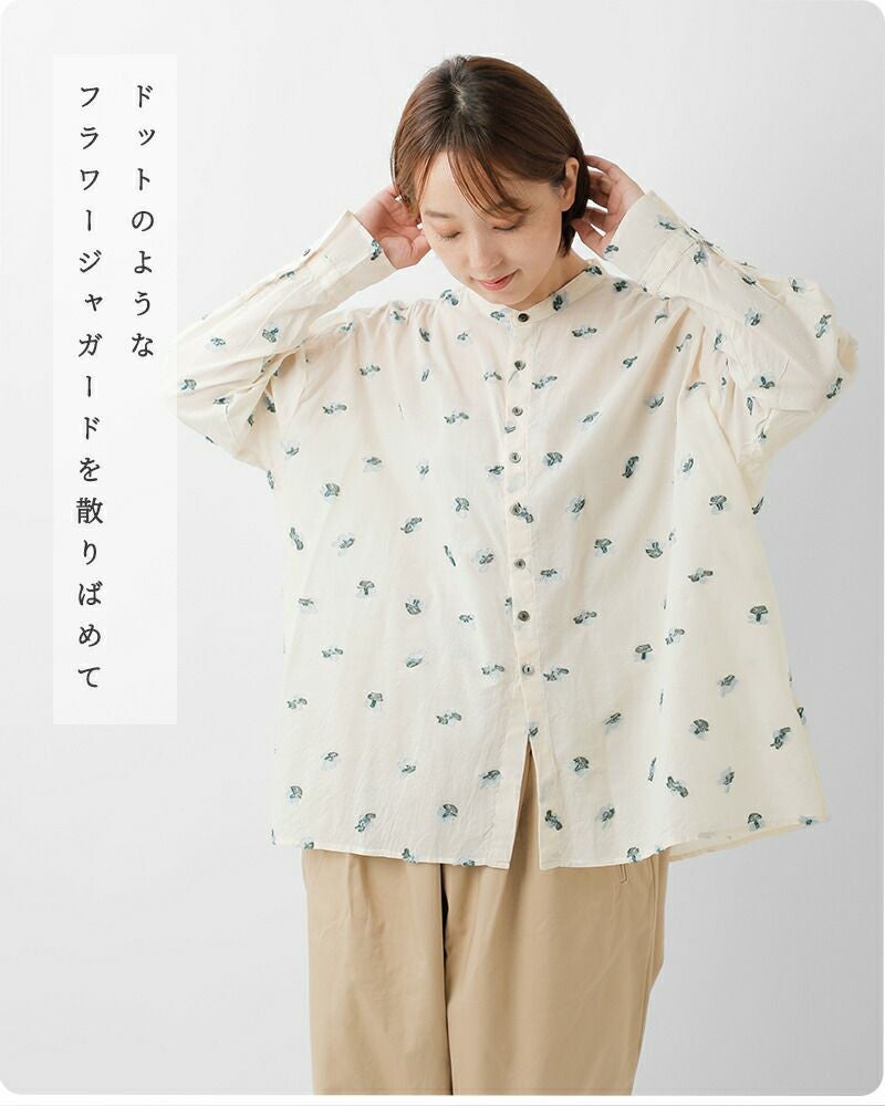 他の画像を見る ドットのような花柄ジャガードがフェミニンで可愛らしいふんわり軽いゆったりしたコットンブラウス 【60%OFF】NOUVELLES DU PARADIS ヌーベル ドゥ パラディ コットン カットジャガード スタンドカラー ブラウス pb25318-tr レディース ¥ 19,580 ¥ 7,832 税込 SALE SOLD OUT カートに入れる お気に入りに登録する