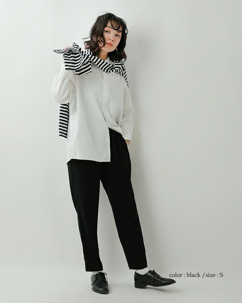 他の画像を見る シワになりにくい光沢感のあるとろみ素材を使用したすっきり見せるきれいめテーパードパンツ 【40%OFF】TRAVAIL MANUEL トラバイユマニュアル ベネシャン サッシュ ナロー パンツ 5040-rf レディース【サイズ交換初回無料】 ¥ 15,400 ¥ 9,240 税込 SALE SOLD OUT カートに入れる お気に入りに登録する