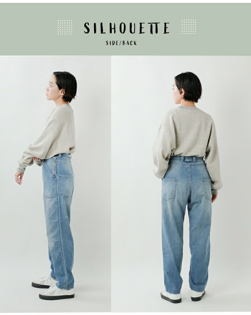 ゆったりとした腰周りと、裾にかけてのテーパードで程よくルーズなシルエットに仕上げたフルレングスデニム。ラフな雰囲気ながら、すっきりとしたどこか女性らしさを感じるデニムパンツに仕上がっています。