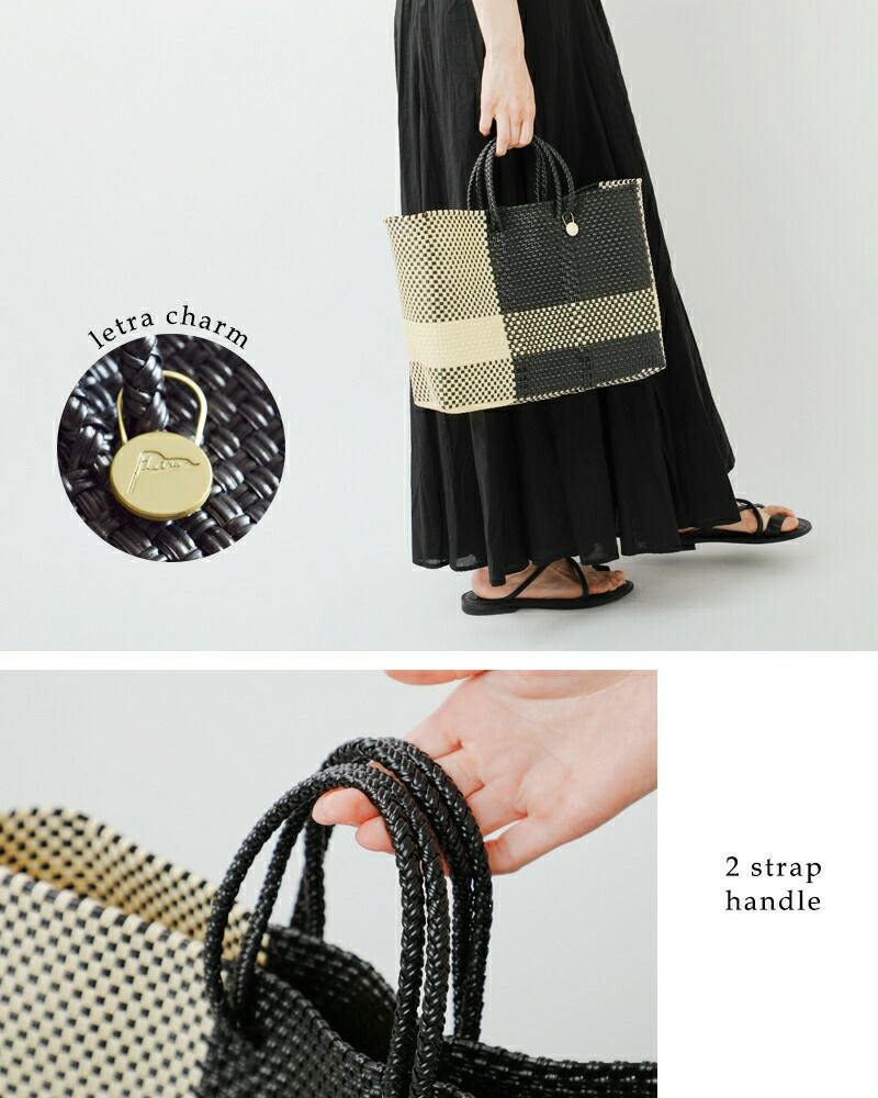持ち手は2重のハンドルで、手でしっかりと持つことが出来ます。レトラオリジナルの可愛いチャームがポイント。