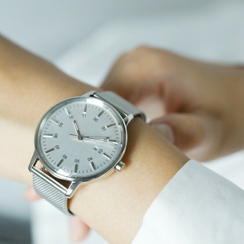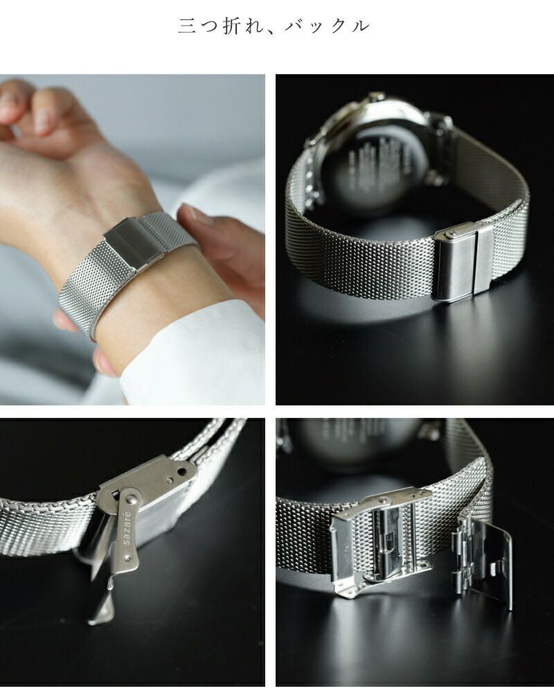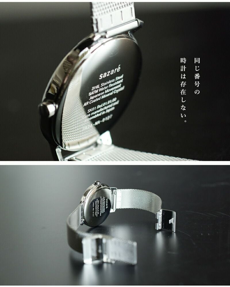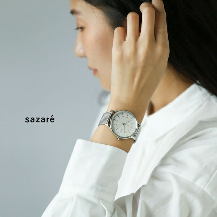 sazare(サザレ)より、SSシルバーミラーフィニッシュ・シルバーインデックスダイヤル・メッシュベルト腕時計のご紹介です。祖父がつけていたような、どこか懐かしさがありながらも作りの良い、ノスタルジックな雰囲気の漂う腕時計です。
