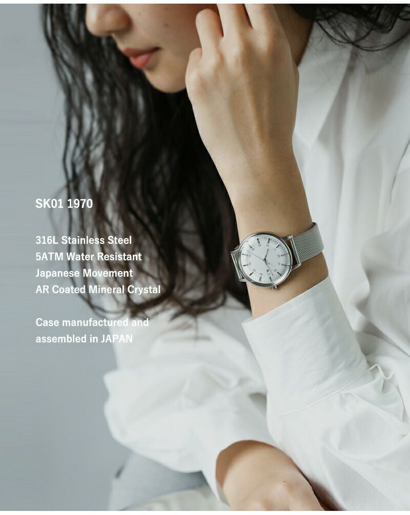 SSシルバーミラーフィニッシュシルバーインデックスダイヤルメッシュベルト腕時計sk01-1970