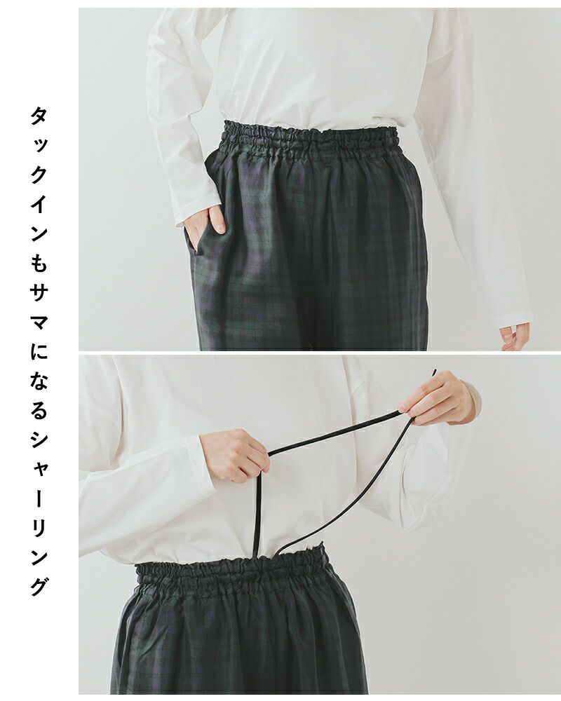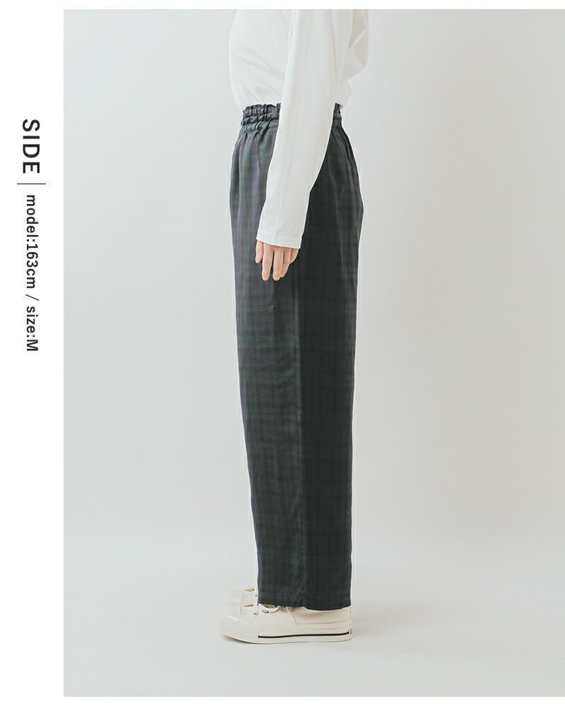 光沢感のある落ち着いたチェック柄が大人っぽいワイドストレートシルエットのイージーパンツ 【50%OFF】TRAVAIL MANUEL トラバイユマニュアル チェック サッシュ ワイド パンツ 5091-mt レディース【サイズ交換初回無料】