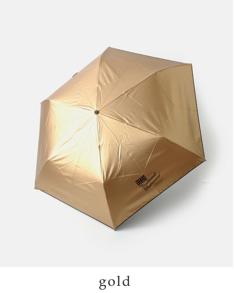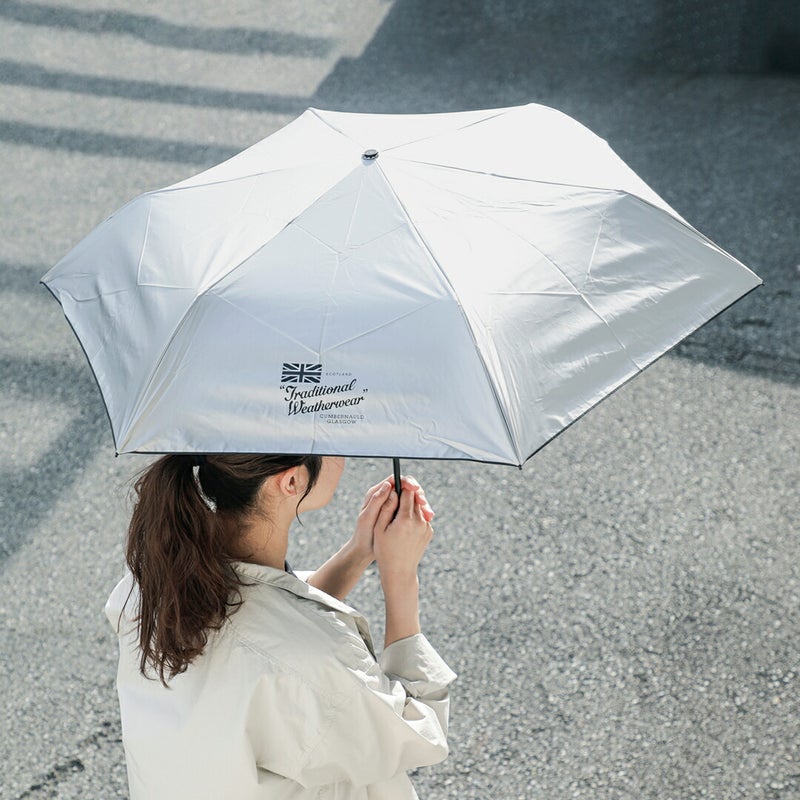 Traditional Weatherwear(トラディショナルウェザーウェア)より、ライトウェイト折り畳み傘 “LIGHT WEIGHT UMBRELLA” が登場です。圧倒的な人気を誇る軽量の晴雨兼用傘、ライトウェイト アンブレラのシルバー、ゴールドモデル。99.9%の紫外線遮蔽率(UVカット比率)で、紫外線から肌や目を守ります。約172g(傘袋込)と常に持ち歩いても苦にならない重さでありながら、カーボン・アルミニウムの2種類の素材を組み合わせた骨を採用することで高い強度を実現しています。
