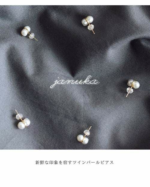 januka(ヤヌカ)より、ツインパールピアスのご紹介です。真珠を使用したシンプルながらも上品なデザインで、双子パールならではの目を引く個性のある可愛らしさがポイント。パールの優しい色合いとゴールドがマッチした大人にぴったりのジュエリー。シーンやコーデを選ばずに合わせやすいアイテムです。