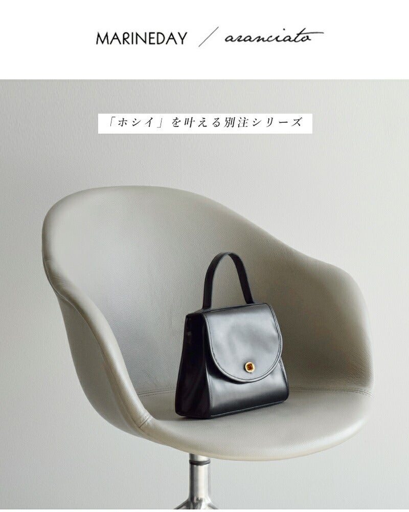 MARINE DAY(マリンデイ)よりaranciato別注 イタリアンスムースカウレザー フラップハンドバッグ “SILVER”のご紹介です。昨シーズンに引き続き、より女性らしく美しい雰囲気のスムースレザーで、当店だけのために特別に作っていただきました。