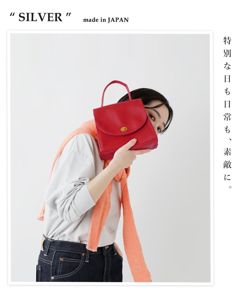 aranciato別注 イタリアン スムース カウレザー フラップ ハンドバッグ “SILVER” silver