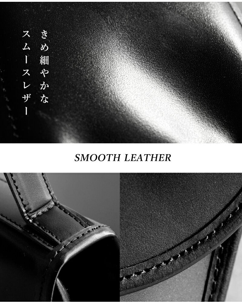 見ての通り、全体にきめ細やかなシボが入った、高級感のあるイタリアンスムースレザー(牛革)を使用しています。軽くて柔らかさはありつつも、程よいハリもあるので、台形シルエットをキープし美しく表現します。