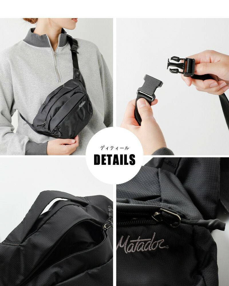 Matador(マタドール)よりMTDオングリッドヒップパックのご紹介です。普段使いから一般の旅行を意識したミニマムですっきりしたデザインのパッカブルなヒップパックです。普段使い、旅行などのシチュエーションにおける耐候性、耐久性、機能性は十分に考慮され設計されています。また、機能性はもちろん、普段使いしやすいシンプルでスタイリッシュなデザインも魅力なヒップパックです。