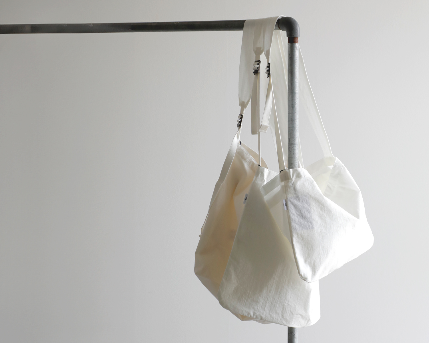 荷物が多めの私は、今回最後に持ったマチ付きのショルダーバッグ [SHOULDER SACK 2.0]を最終的にセレクト。肩にかかる部分が幅広のストラップで、荷物が多い日も肩が痛くなりにくそうなのもポイントです。低身長だと大き目バッグの時に、底に手が届かないことがよくあるのですが、ストラップを一番短くすると、その問題も解消されます。薄着の季節のTシャツやタンクトップの上から斜め掛けした時に、この幅広のストラップと金具が見た目にもよいアクセントになってくれそうで、これから着こなしを考えるのもとても楽しみです!