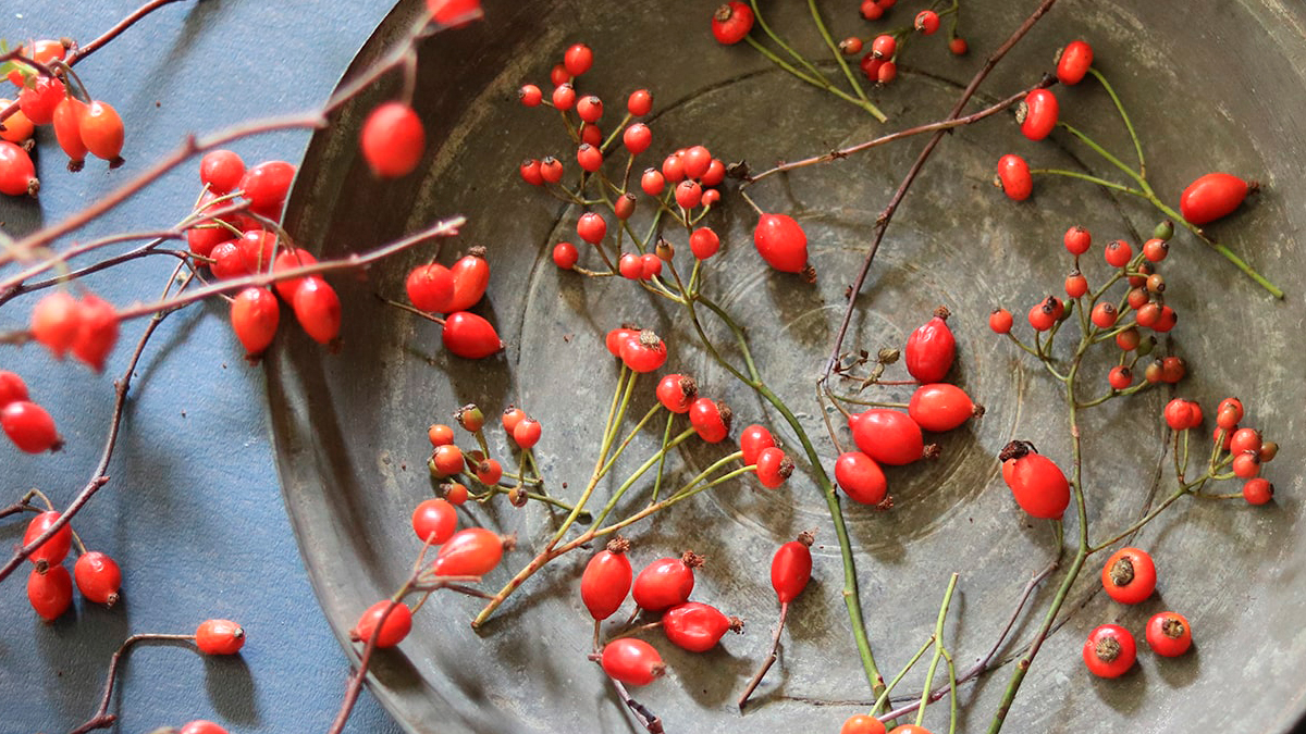 秋には様々な色の実物が出回りますがその中でもよく目にするのがこちらの3種。「ノイバラ、鈴バラ、ローズヒップ」いずれもバラ科の植物で一重咲きの可憐な花を咲かせたあと実をつけます。