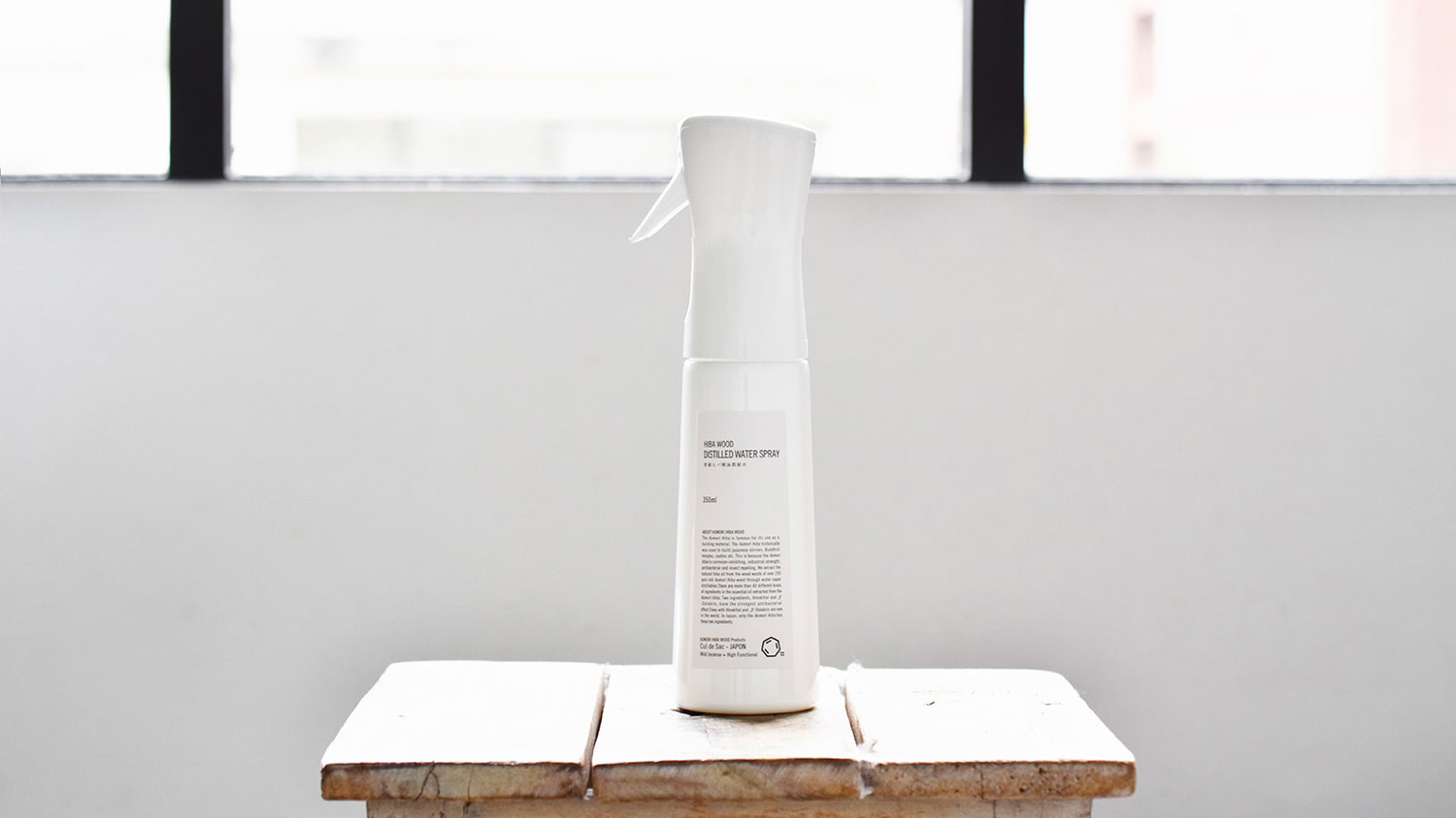 真っ白なボディが美しい佇まいのこちらのスプレー。抗菌作用のある青森ヒバの成分を含んだ、蒸留水が入っており、拭き掃除や、お部屋の芳香などに使えます。