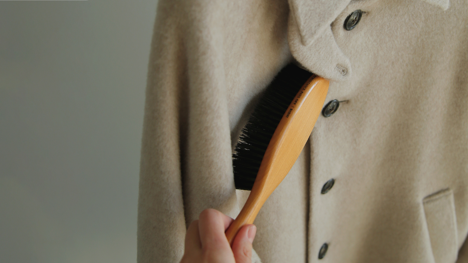 ブラッシングはお手入れの基本。埃をおとし繊維を整えることで毛玉予防にも。埃は虫食いの原因にもなりますので大切なお洋服を守るために日常的なブラッシングをおすすめします。