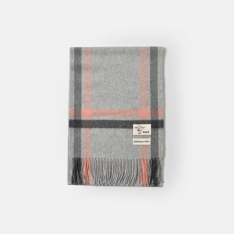 ストールが大好きな私、この冬はカシミヤ100%で細めのbeeeのマフラーを購入しました。シャツメインのコーディネートやシンプルニットを楽しみたい時、大人・可愛いチェックのマフラーが大活躍してくれています。柔らかくさらっとした肌触りと約120gの軽さが肌と肩に優しくとても気に入っています。カラーは悩みに悩んだ末、イエベ春の私はライトグレー×ピンクCK(col.ch13)にしました!顔色も明るく見えて嬉しい一枚です。