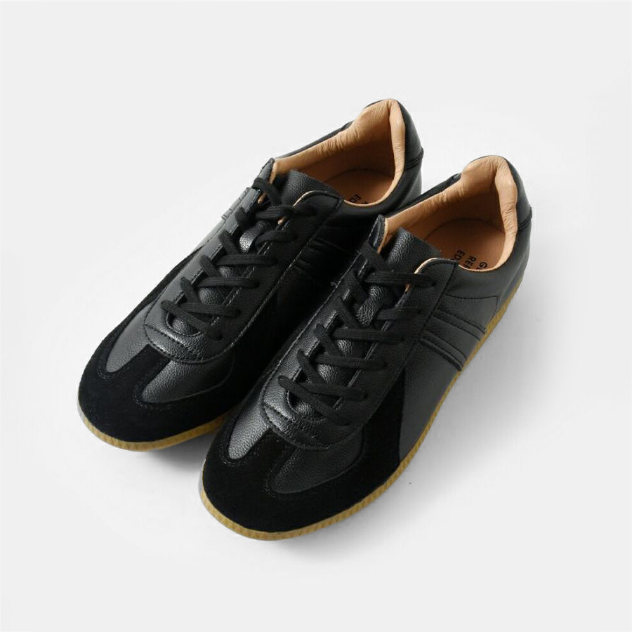 汚れても気軽にはけるシューズが欲しいな…と思っていたところスクール用のグランドシューズとして長く親しまれてきたという、こちらのシューズに出会いました。お手頃価格なので、ちょっとチープに見えるかなぁ…なんて思っていましたが、こだわりの素材で作られたマットなオールブラックが品よくかっこいいです。いつものサイズを購入しましたが、横幅にやや余裕があり、ふかふかのソールで足が疲れにくいです。定番品として買い直しのきく安心感のあるシューズです。
