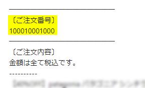 ご注文後に当店より送付いたしました、件名「ご注文ありがとうございます。」というメールの本文の冒頭に記載のある「1」からはじまる7桁の番号