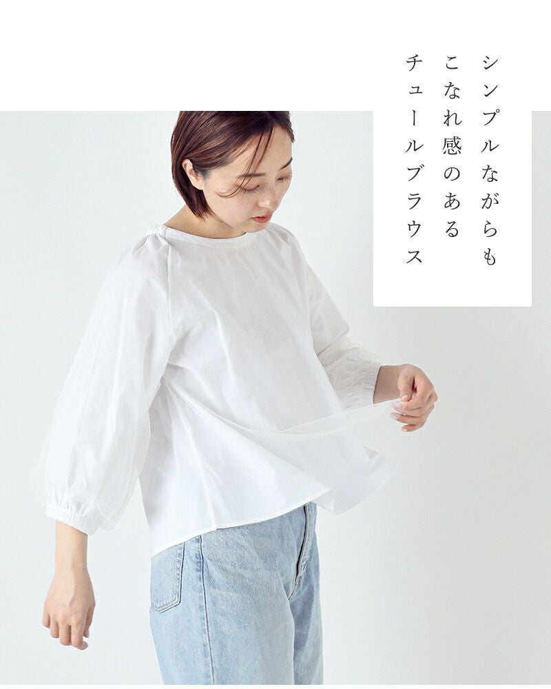 他の画像を見る 柔らかいチュールとブロード生地を2重にした1枚でレイヤードしているようなデザインのブラウス denicher デニシェ コットン チュール ボリューム ブラウス d251037-yo レディース ¥ 12,980 ¥ 12,980 税込 SOLD OUT カートに入れる お気に入りに登録する