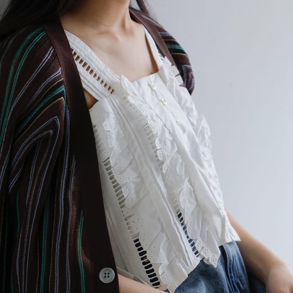 他の画像を見る アンティークの洋服を再構築チュニックブラウス配色パイピングでモダンにアップデートシャドーチェックジャガードファブリック奥行きある風合い Laboratory ラボレイトリー コットン アンティーク チュニック ブラウス “ANONYMOUS STRING ANTIQUE TUNIC BLOUSE” la448 レディース 2026ss新作 春夏 ¥ 23,980 ¥ 23,980 税込 カートに入れる お気に入りに登録する
